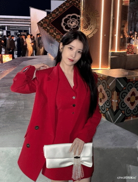 IU剧宣时的穿搭亦然无缺契合剧中女主的地位与格调,孤独红色连衣短裙上点缀着蝴蝶结和法例褶皱谋略,衬得东谈主精神情状极佳,配上玄色丝袜看成点缀,经典的红与黑搭配。