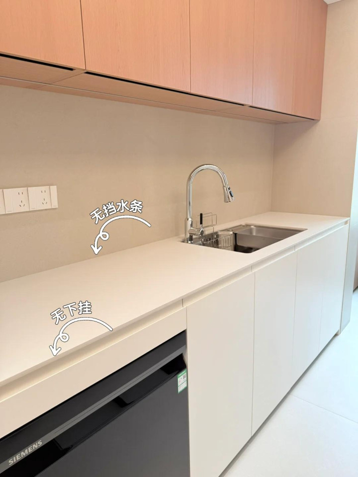 不要挡水条之后就会发现,厨房台面愈加简易好看了,卫生也更好作念了,因为原本两个阴角就剩一个了。