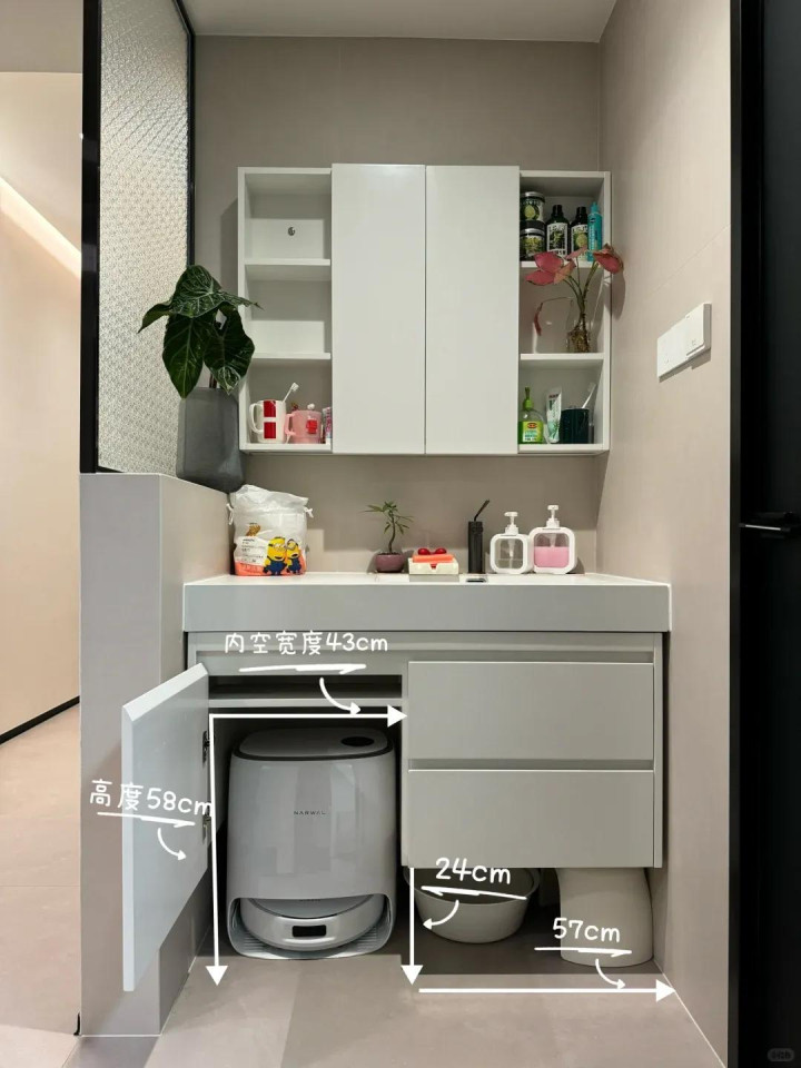此次径直作念台下盆,颜值栽培了不说,还方便台面收拾卫生,为了贯注其掉落,更是增加了两根横向复旧,毕竟安全无小事嘛!