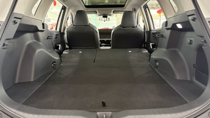 静态体验下来,荣放作为传统燃油车,智能化和舒适性虽然不是核心卖点,但也让人看到了诚意。比如CarPlay、HUAWEI HiCar、Carlink都有,座椅支持电动调节、加热,电动尾门、全景天幕等也都有配备。2690mm的轴距让其后排空间在同级中不占优势,但后备箱空间是亮点,可容纳4个26寸、2个20寸行李箱,后排座椅整体放倒后纵深可达1.9米。