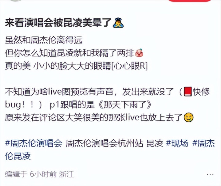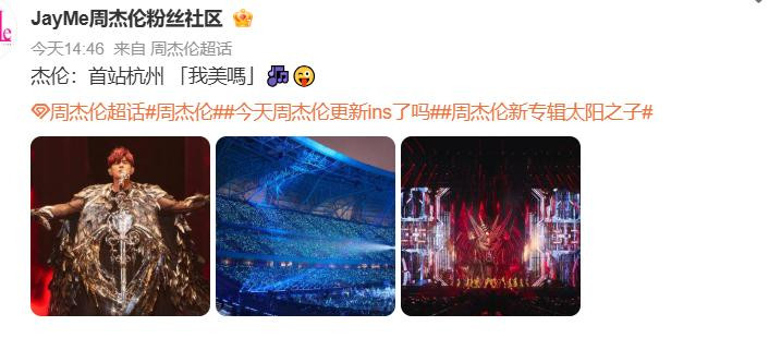 周杰伦杭州演唱会首场收场后,在应付平台上更新了3张相片,臭好意思了一把。