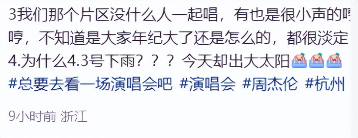 有网友责骂现场不雅众冷场严重,少量不暖和,但周杰伦这么的状态,似乎也很难让不雅众暖和起来。