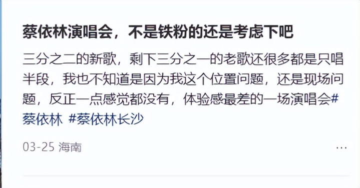 他的前任蔡依林来内地的巡演也被网友批得很惨,一样亦然演唱会现场通常出现象。