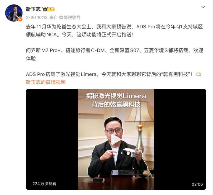 2026年3月30日,华为乾崑智驾ADS Pro 增强版城区领航援助防范开启OTA推送,问界新M7 Pro+、捷途旅行者C-DM、全新深蓝S07、五菱华境S成为首批搭载车型。更值得柔软的是,华为乾崑智驾此次把城区领航援助功能下千里到15万级车型,瞻望本年就有20多款不同车型搭载,遮蔽轿车、SUV、越野车全品类,王人备遮蔽从平日家用到高端旗舰的全场景需求。