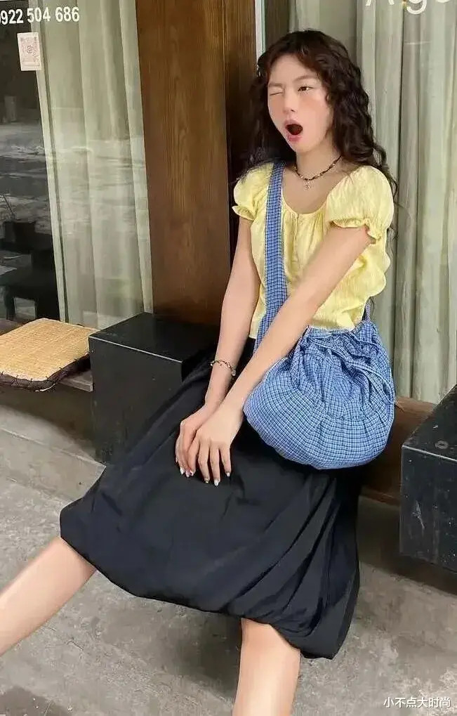 从简的黄色甜好意思小衫,搭配玄色的半身气球裙,再搭配蓝色格纹斜挎包,一整套色调崭新,和缓又不失从简气质,要道是又很平素酣畅不挑东谈主,合适咱们大部分无为小个子穿搭。▼