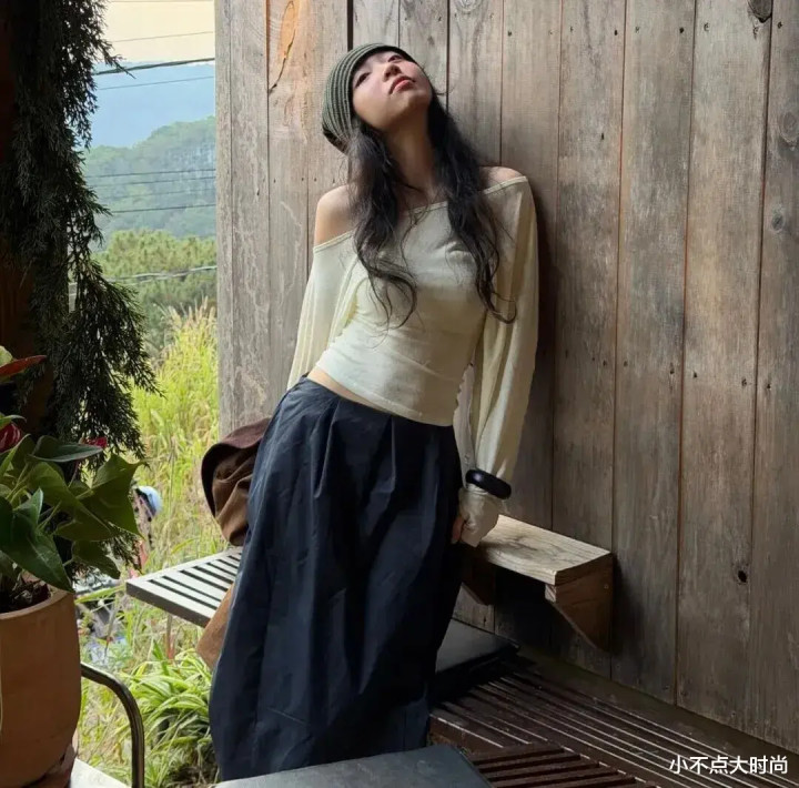 比如这套淡色的斜肩上衣,掐腰短款,搭配高腰半身裙,上短下长,高腰线当然,显高又很显瘦,纯欲纯欲的又有马虎感。▼