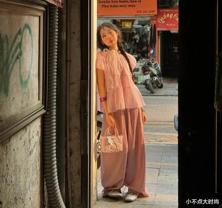 这套粉色系的搭配甜而不腻、仙而不飘,同色系搭配视觉蔓延,当然显高又高等。一整套和缓优雅,又有安静马虎感,满满的春天氛围感,超出片的。▼