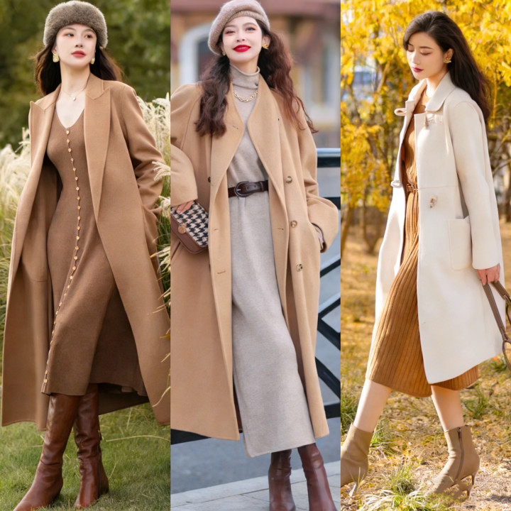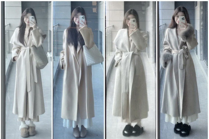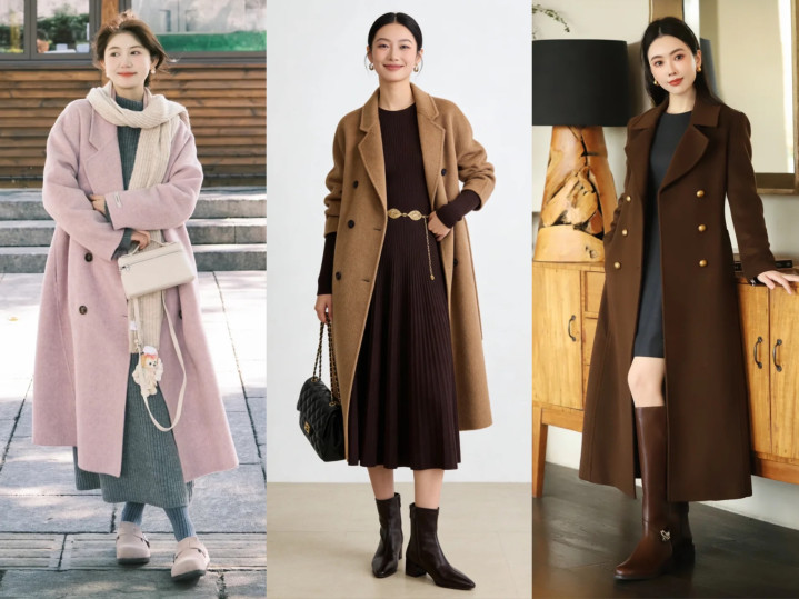 遴聘大衣与连衣裙的组合最显温存,羊绒毛呢面料皆有很好的亲肤性,御寒也鼓胀,最遑急的是大衣的版型自带高档感,与极具女东说念主味的连衣裙的温存麇集结,确实超等有韵味,氛围感完全。