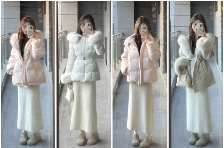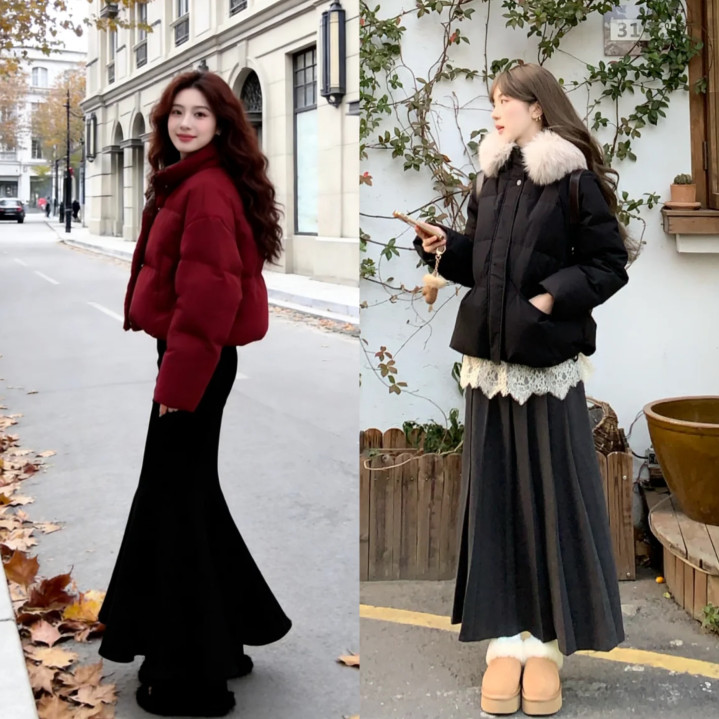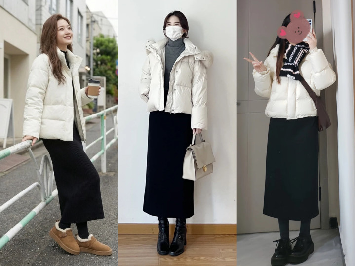短款羽绒服+毛呢半身裙,由于羽绒服版型的扩张感,是以推选遴聘直筒版的毛呢半裙,上宽下窄才是冬季穿搭的正确翻开步地,念念要更温存更具氛围感,遴聘淡色系的搭配,比如淡粉色羽绒服+米白色毛呢裙,偶然浅蓝色+米白色,皆超好意思瞻念。