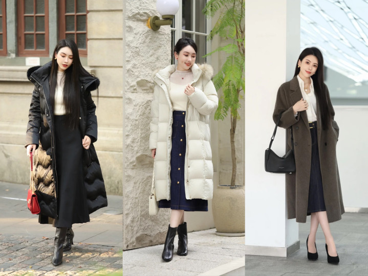 长款外衣+半身裙,不管是羽绒服仍是大衣,皆可以运用半身裙的高腰策划,来突显好体魄,遴聘淡色系的修身内搭,在长款外衣的烘托下,可以粗疏遮肉显瘦,遴聘高跟短靴来栽培举座造型的密致度。