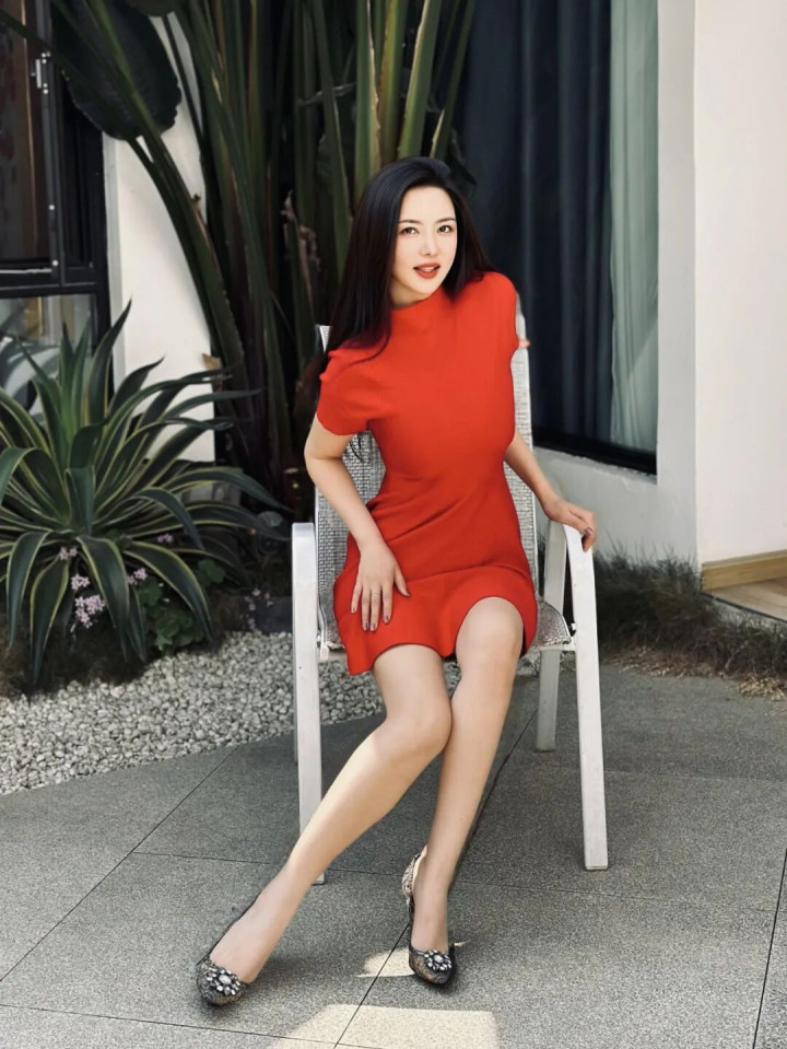 买球投注平台app 前卫穿搭: “橘红色连衣裙+钻饰高跟”
