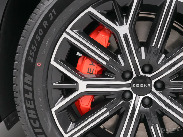 实拍车型配备20英寸多辐式轮拱,而且还拥有红色刹车卡钳。搭配的是255/50 R21的米其林PS4轮胎。另外根据配置的不同,还配备提供255/55 R20、275/40 R22其余两个规格轮胎。