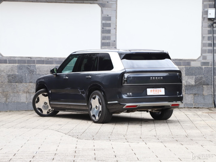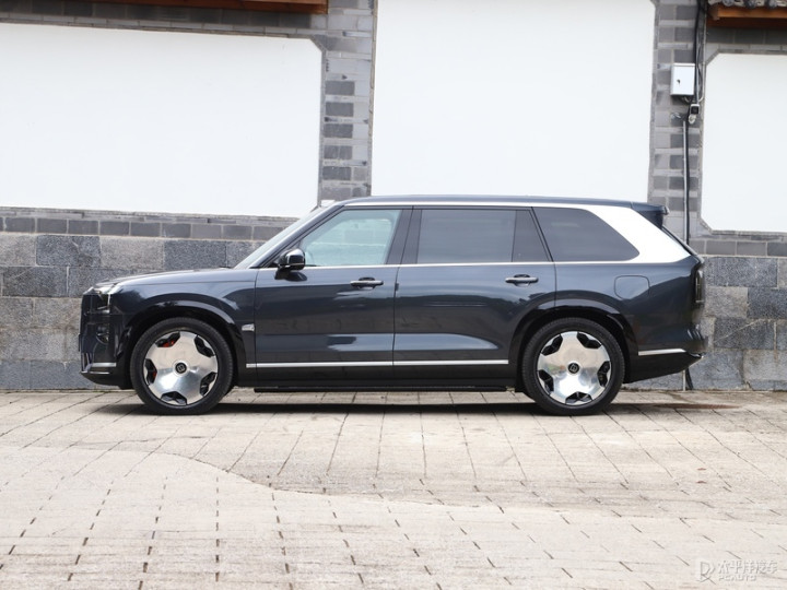 车身侧面,极氪9X采用了非常平直的设计,并在ABC柱进行黑化处理,营造出悬浮式车顶的视觉效果,搭配22英寸镜面锻造轮毂,整体气场不输劳斯莱斯库里南。值得注意的是,新车采用常规造型的机械式车门把手,并非隐藏式设计。此外,极氪9X还提供密条辐和熏黑轮毂两种样式轮毂可选,尺寸均为22英寸,轮胎规格为285/55 R22。