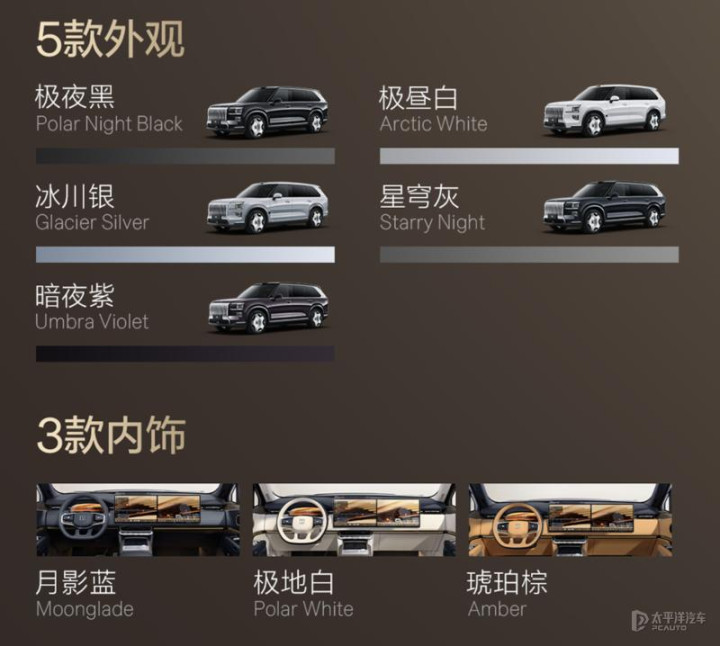 回顾极氪9X(询底价|查参配),其采用家族式设计语言,采用大尺寸直瀑式进气格栅与分体式大灯设计,其中前大灯组采用双百万像素智能投影大灯,具备迎宾欢送、灯光秀、辅助驾驶、娱乐等功能。配色上,新车提供极昼白、冰川银、星穹灰、暗夜紫、极夜黑共5款配色可选。此外,极氪9X还提供曜黑套件可选,全车外饰件均做了黑化处理,整体风格更运动。