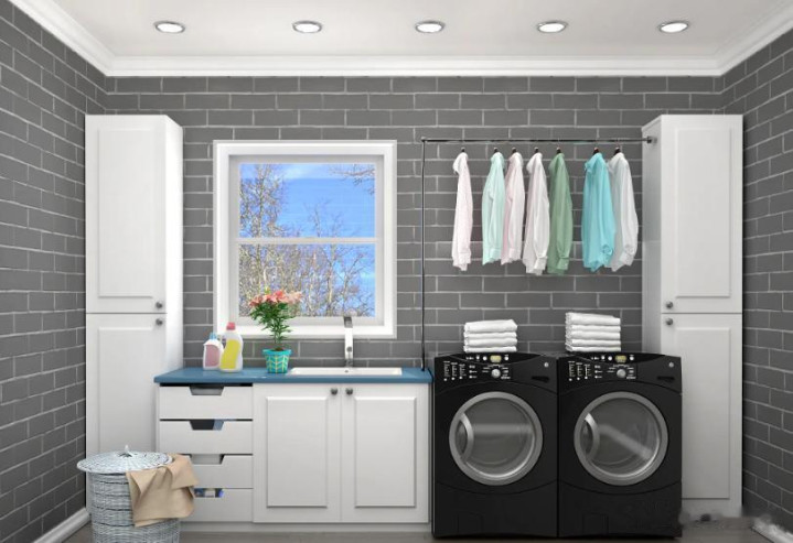 遐想提倡: 在连合曝晒露台的场地,专诚划出一个洗衣房,招引洗衣池、洗衣机、烘干机位。