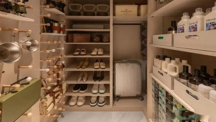 遐想提倡: 诈欺楼梯间或阴面旯旮,留出一个至少6平米的收藏间,打满通顶货架。