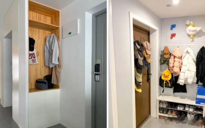 遐想提倡: 在入户门处留一个3-5平米的沉着空间,换鞋、脱外衣、放雨伞,甚而装配一个洗手池。