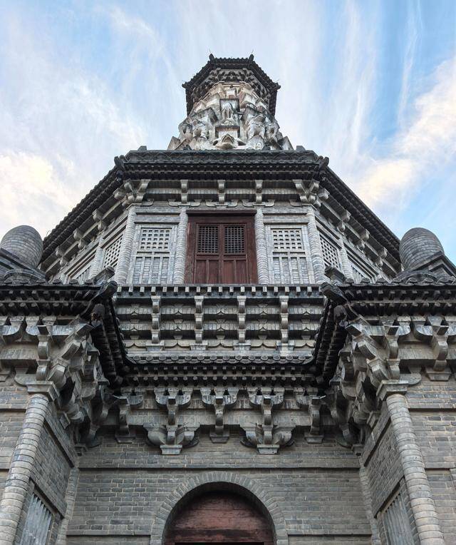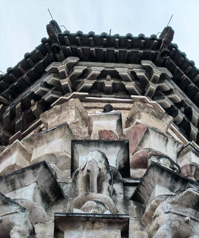 整座华塔是八角砖雕砌成的仿木构楼阁式花塔,通高40.5米,不算特殊高耸,却胜在造型独有,结构处处藏着巧想,绝无重迭。它并非单一的塔身,而是由主塔和从属小塔私密衔接,完全用砖砌就,共同坐落在一个方形的基台之上,合座平面呈现出八角形,主次相依,交加有致,远纵眺去就打成一派,近看又能发现每一处结构都各司其职,莫得半分弥散。这种主塔环抱小塔的盘算推算,在国内古塔中本就稀有,既冲破了单一塔身的单调,又让合座造型更显灵动小巧,足以见顺应年盘算推算缔造的匠东谈主,有着多么超前的审好意思与深通的武艺,在莫得精密仪器的年代,全凭手工与劝诫,打造出这么结构富于变化的建筑,果然让东谈主叹服。