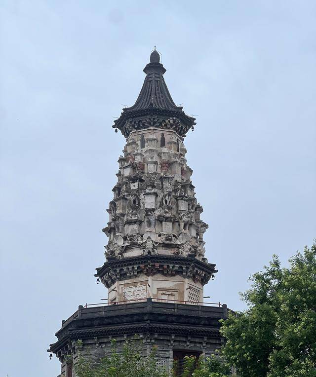 整座华塔全用砖砌,莫得弥散的木柴辅佐,却能仿出木构楼阁的韵味,砖雕的纹路、仿木的结构,每一处都作念得惟妙惟肖,足以见得金代砖雕武艺的空前绝后。那些壁塑历经千年风雨,虽说有了多少风化的陈迹,却依旧能看清原来的神气,线条依旧明晰,情绪依旧灵活,很难遐想,昔日的匠东谈主是怀着何如的虔敬与耐性,一砖一塑逐渐雕饰,才打造出这么繁复又综合的作品。它不像寻常楼阁式塔那般中规中矩,也不同于密檐塔的简陋淡雅,算作中国古塔中特有的花塔类型,广惠寺华塔无疑是其中的杰出人物,造型独有,阴私华好意思,号称海内孤例,在统统中国古塔建筑史上,都有着不成替代的地位。