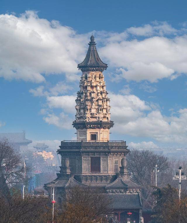 相传这座塔最早始建于唐代贞元年间,跨度在785到805年之间,算下来距今已有一千两百多年,可淌若细细回首它的建筑形制,再对照着留存下来的文件贵寓逐渐磋议,大广阔学者都认定,如今咱们看到的这座华塔,实则是金代的遗存。唐代始建的根基,金代成型的风骨,跳动了数个朝代的更替,在岁月里几经修缮,才最终成了咱们咫尺的神气,这份跳动时空的传承,自己就足够让东谈主动容。它不像那些有着明确编年、身世明晰的古塔,带着一点半遮半掩的奥密,却也正因这份依稀,让它多了几分耐东谈主寻味的历史自由感,让东谈主忍不住去想,唐代的地基里藏着何如的初心,金代的匠东谈主又赋予了它何如的惊艳。